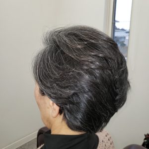 グレイヘアのショートスタイル。70代お客様。しっかりとしたスタイル希望をお持... -